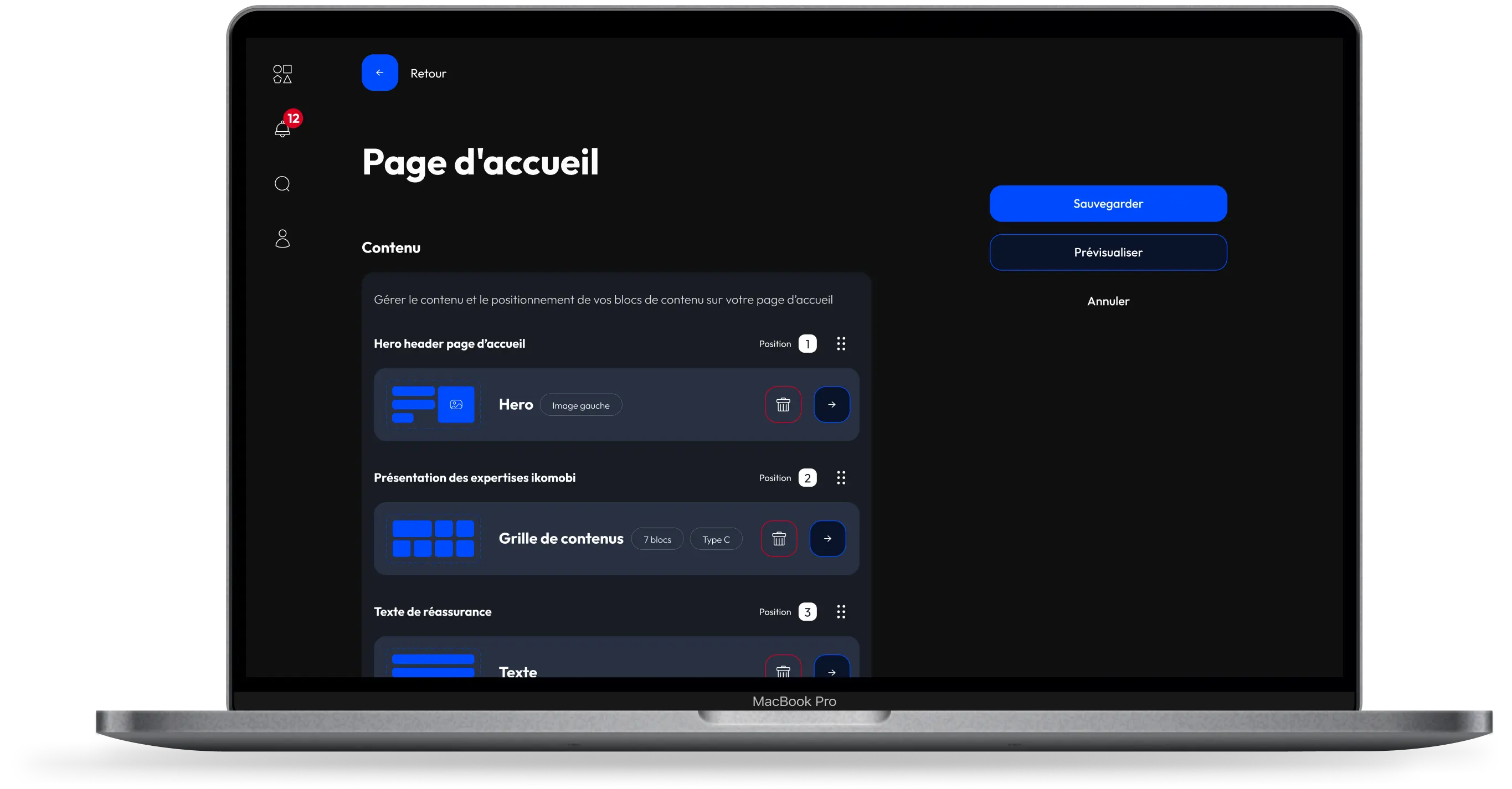 Chaque page, bloc et composant est conçu pour offrir un affichage optimal sur smartphones, tablettes et desktops. Vos contenus bénéficient ainsi d’une expérience utilisateur impeccable, quel que soit l’appareil utilisé.
